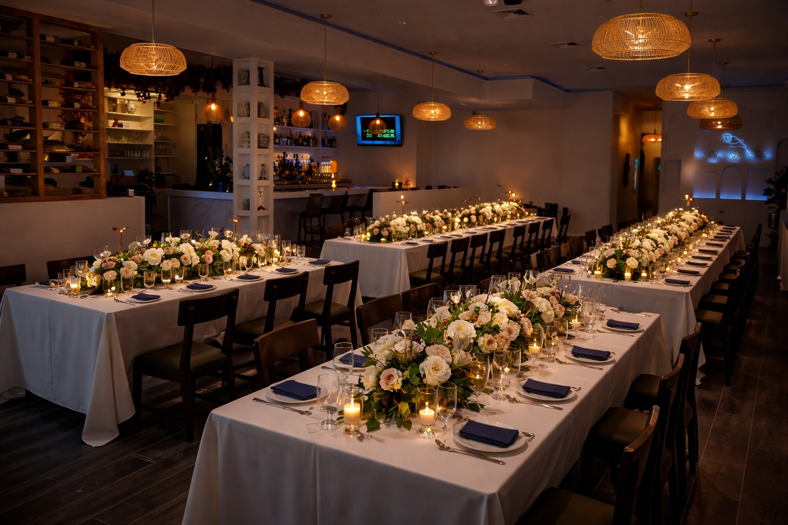 At BLUE WATERS Mediterranean Cuisine, we offer more than dining — we create experiences. From intimate gatherings to private celebrations, our space is designed to host your special moments with elegance and precision.
