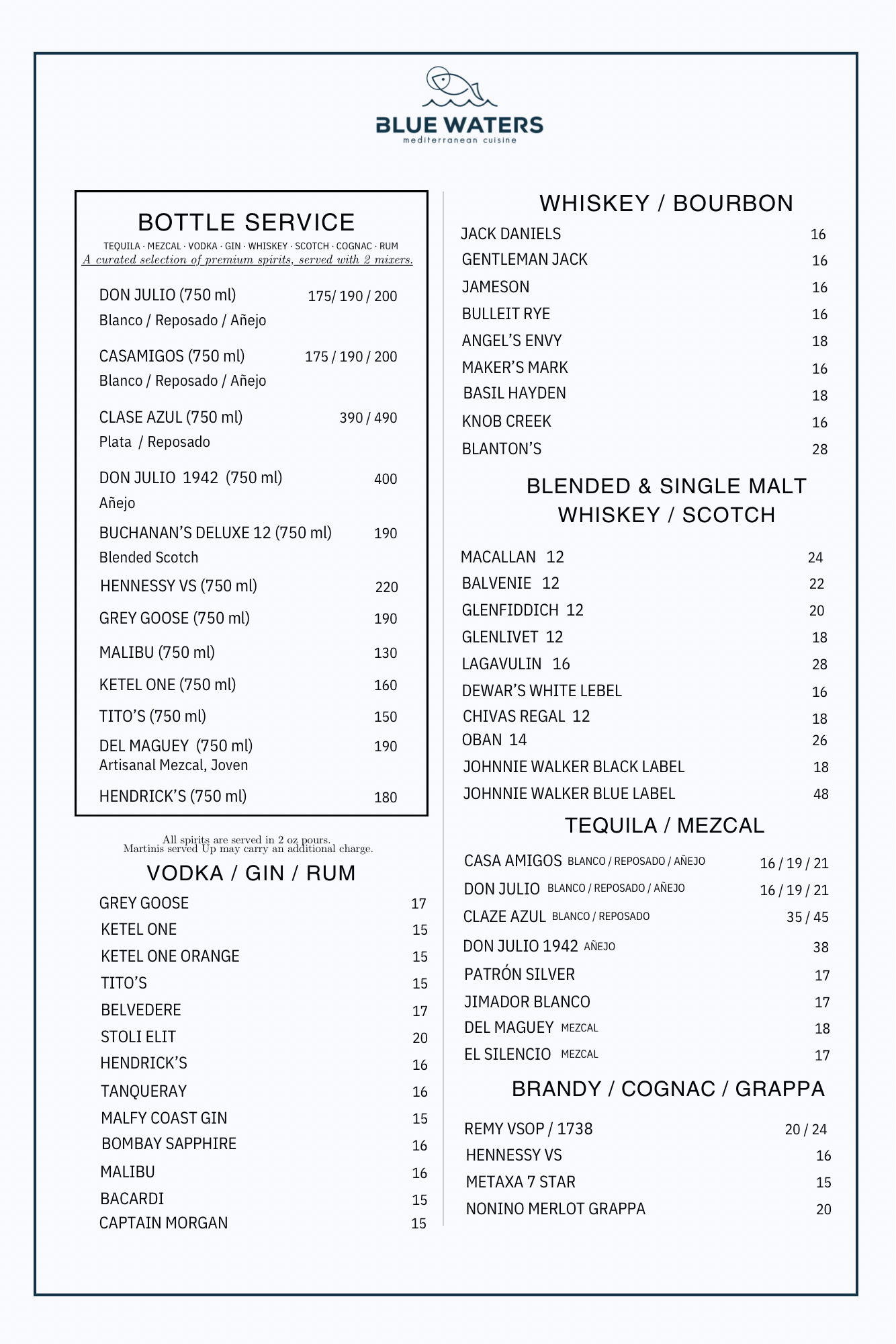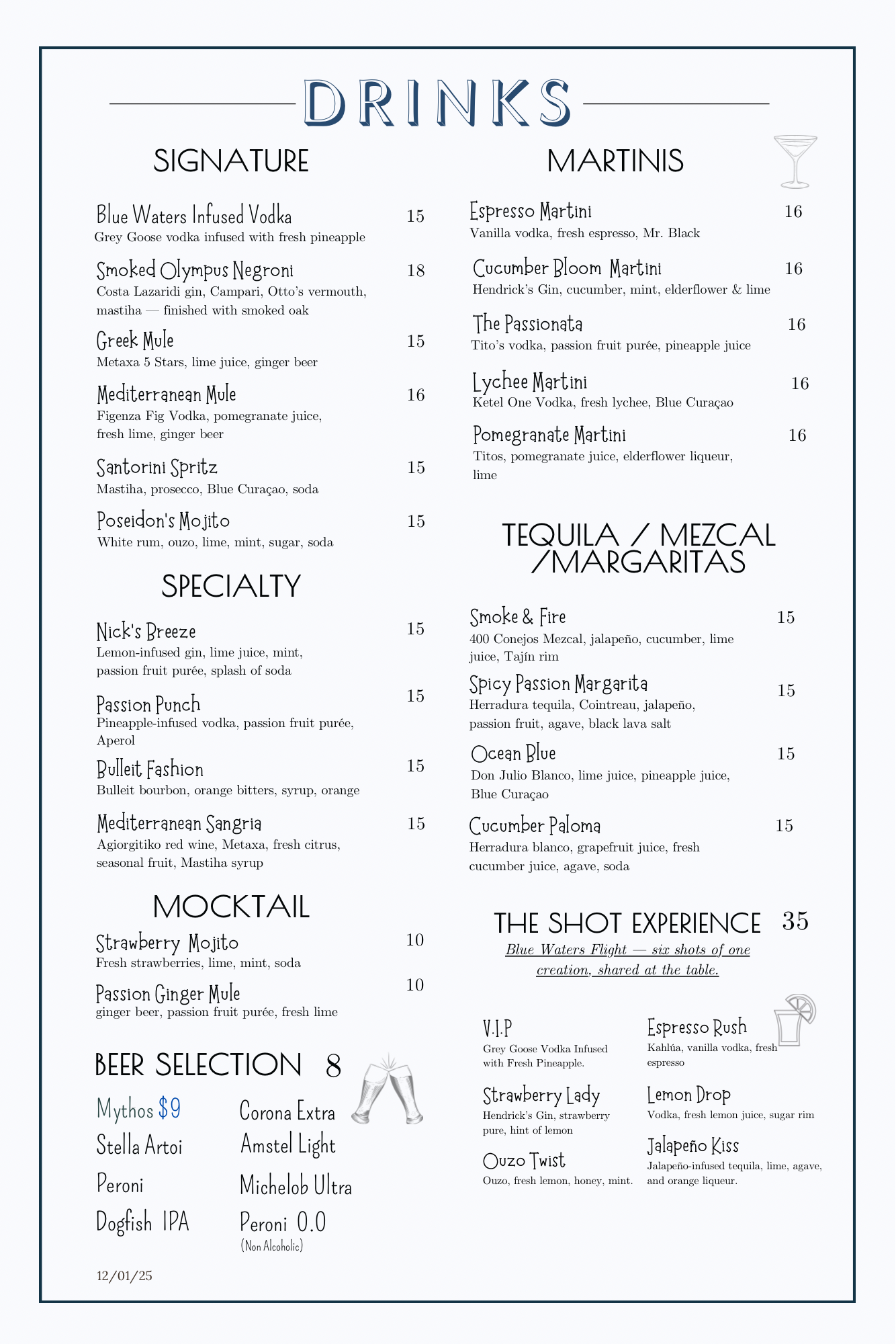 Drinks & Wine Menu